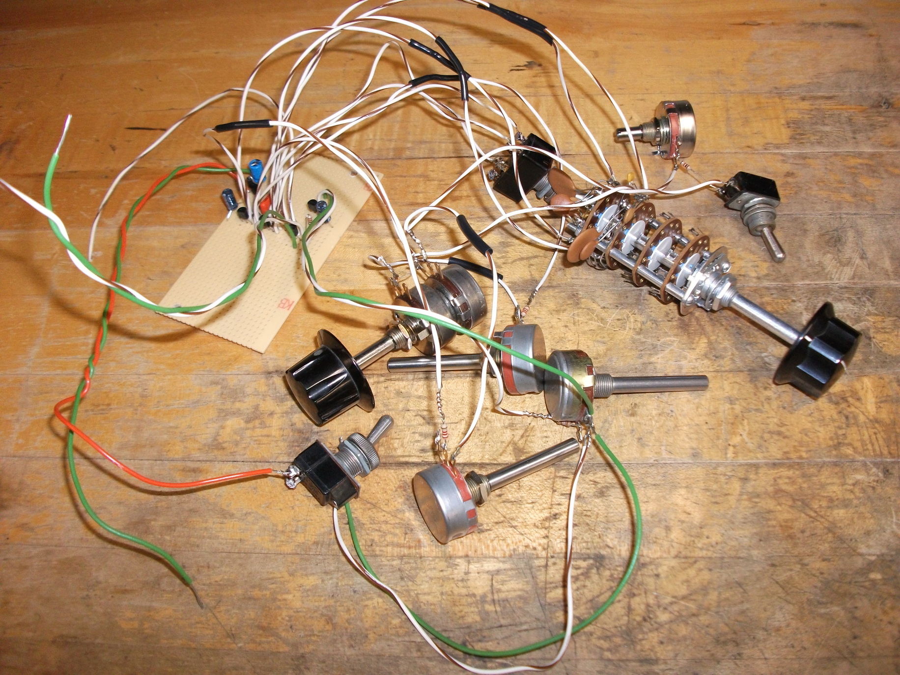 Collector resistors were set to 2.2 Kiloohms, base resistors to dual-ganged 100 Kiloohm