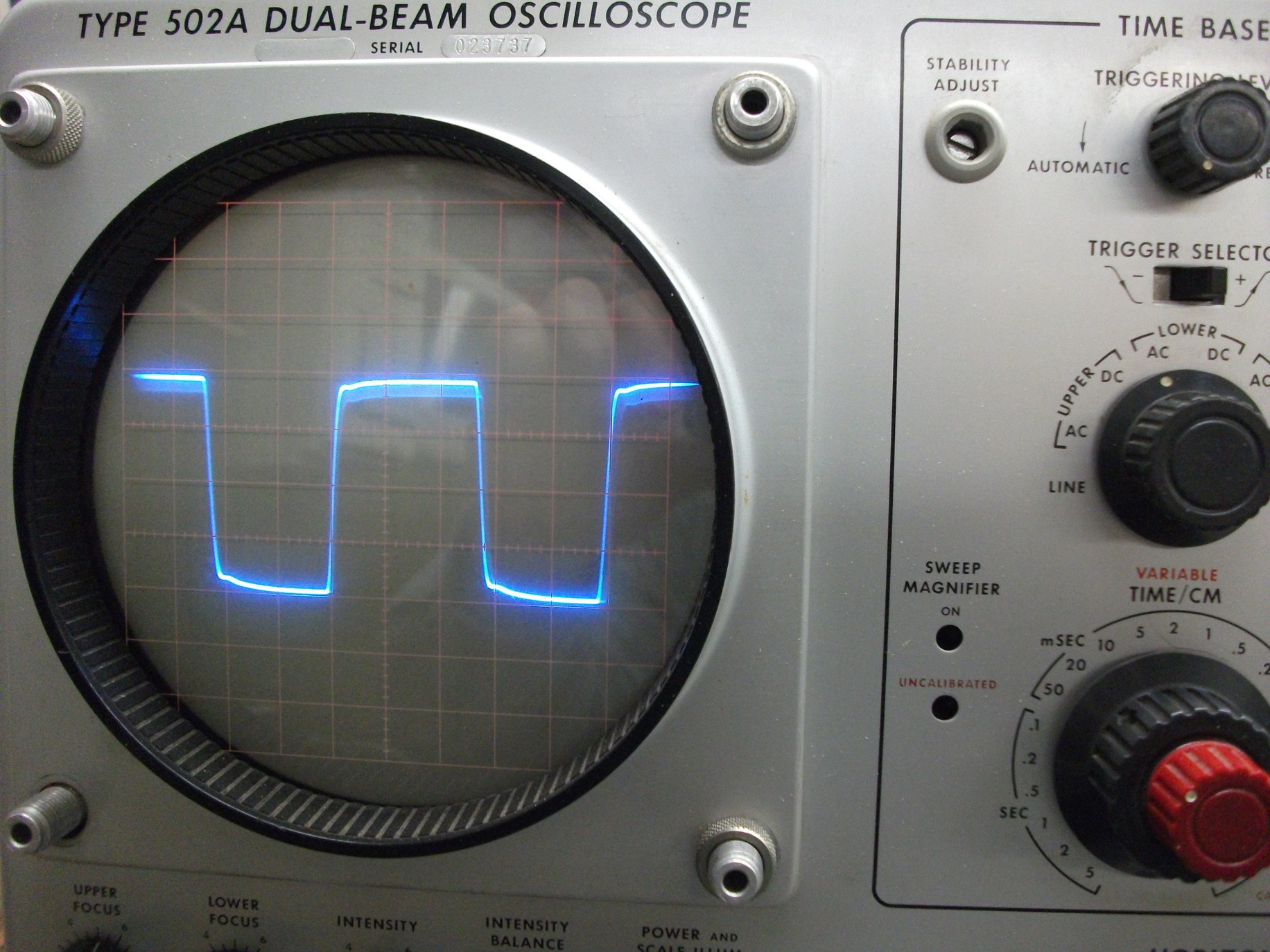 Case was salvaged from scrapped vacuum tube based Krohn-Hite generator and repainted.