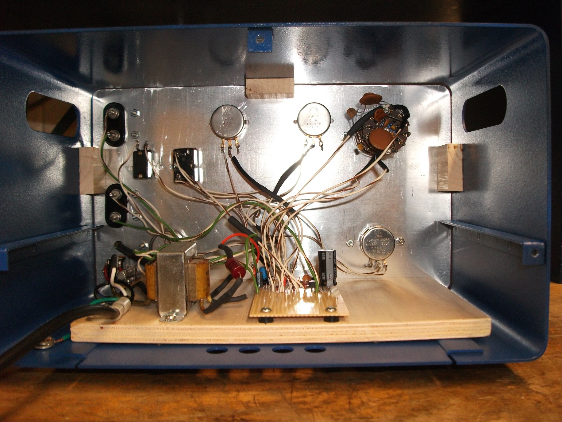 After case and front panel have been painted, potentiometers, switches