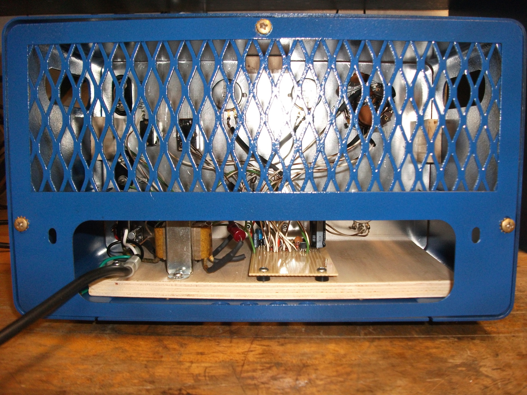 cleaned and painted. New PCB was mounted onto a piece of plywood.