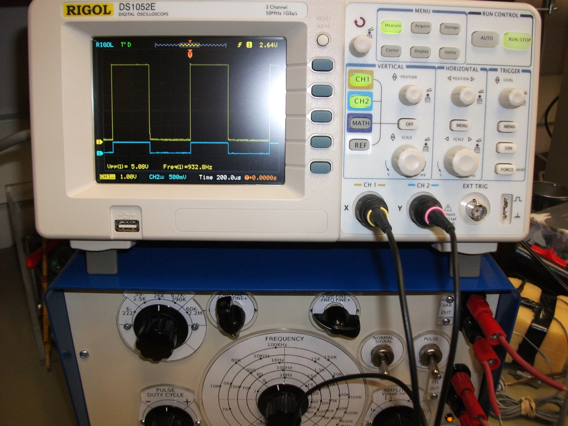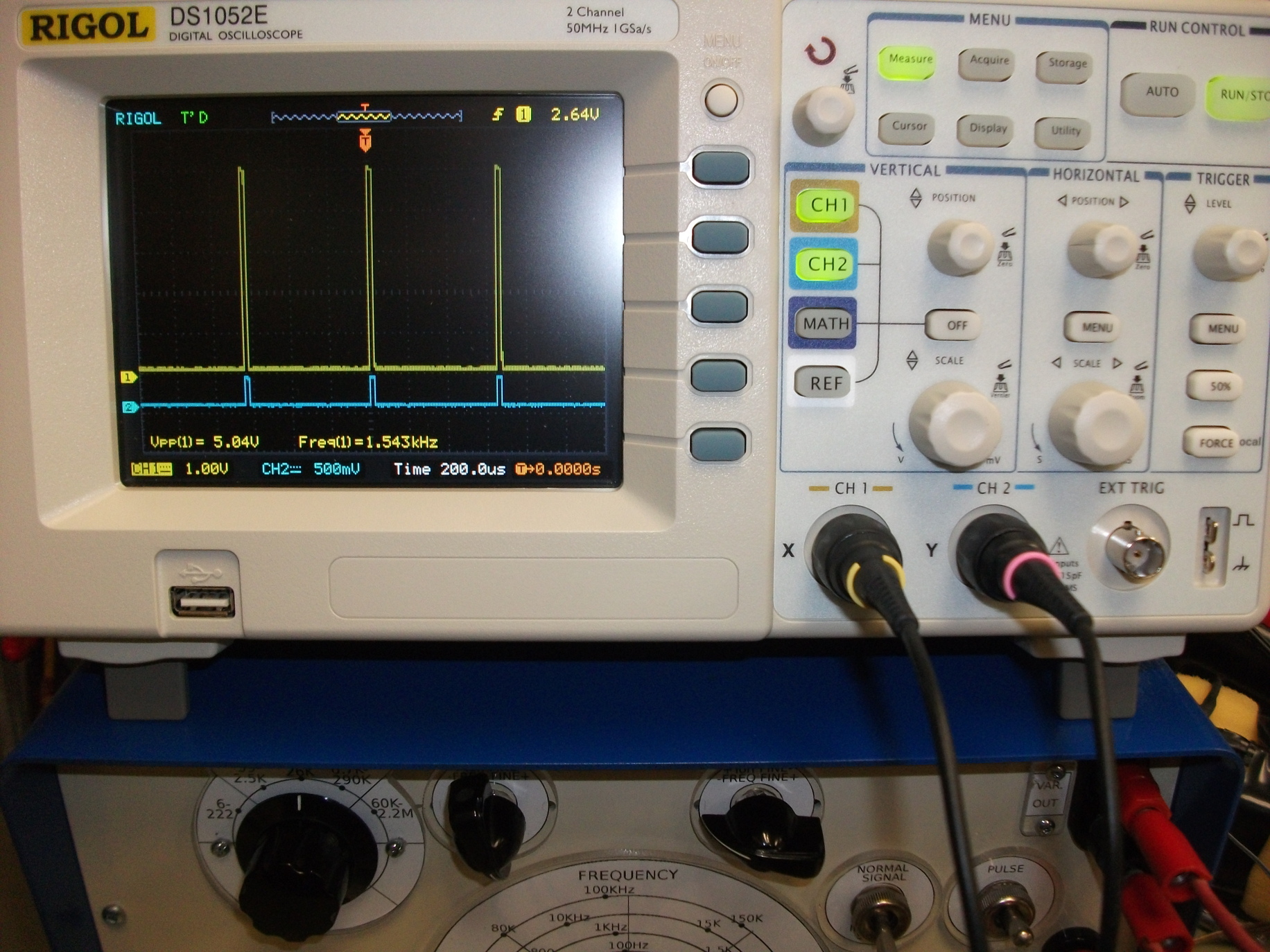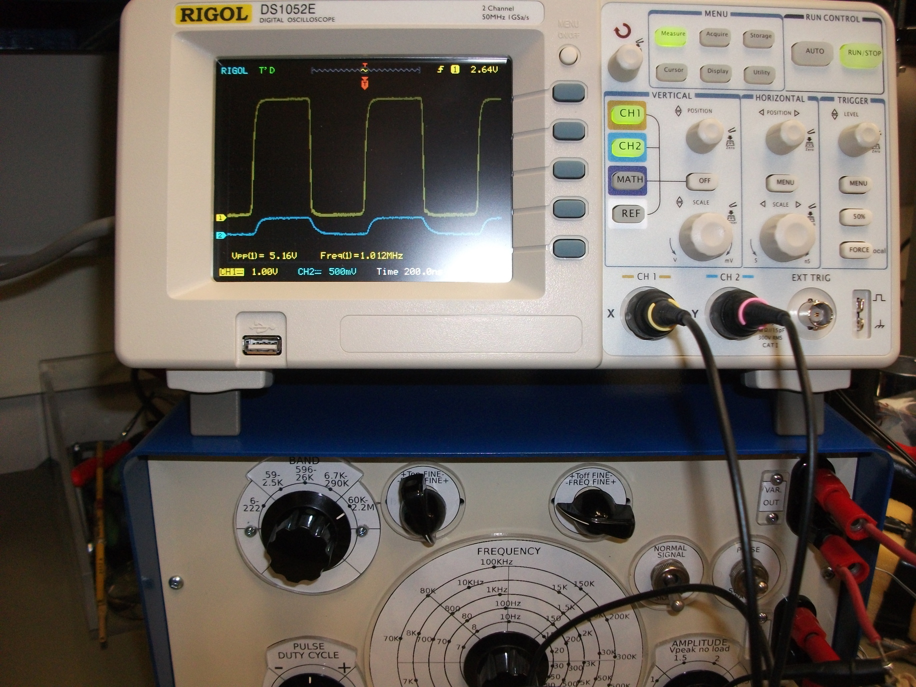 1. Frequency of the square waves and pulses (scale calibrated for square waves only)